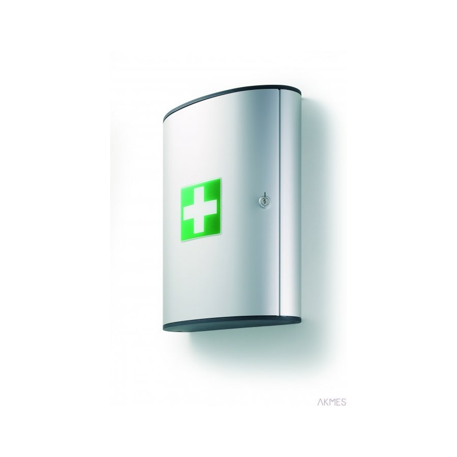 Apteczka Durable na medyczne wyposażenie pierwszej pomocy_- Wykonana z aluminium. Dwie wielkości: z dwiema (1970) i trzema szufladami (1973). Na wewnętrznej ściance drzwiczek znajduje sie specjalne miejsce na umieszczenie informacji o zawartości apteczki. Zamykana na zamek. W komplecie dwa klucze. Mniejsza o wymiarach 302 x 280 x 118 mm i większa 302 x 400 x 118 mm (szer x wys x gł)_- Jednostka sprzedazy 1 sztuka