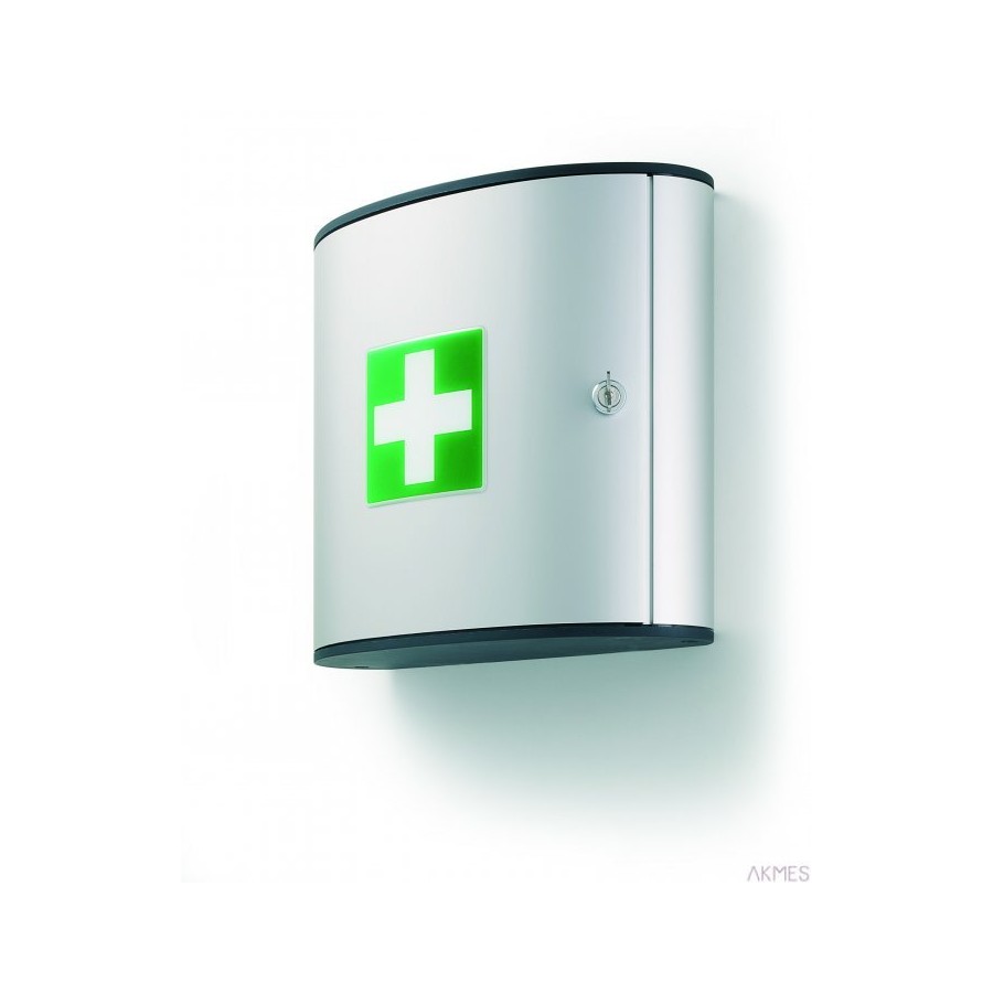 Apteczka Durable na medyczne wyposażenie pierwszej pomocy- Wykonana z aluminium. Dwie wielkości: z dwiema (1970) i trzema szufladami (1973). Na wewnętrznej ściance drzwiczek znajduje sie specjalne miejsce na umieszczenie informacji o zawartości apteczki. Zamykana na zamek. W komplecie dwa klucze. Mniejsza o wymiarach 302 x 280 x 118 mm i większa 302 x 400 x 118 mm (szer x wys x gł). - Jednostka sprzedazy 1 sztuka