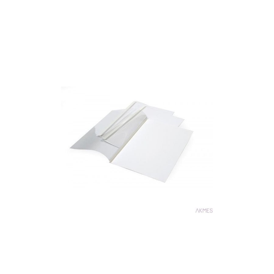 Termookładki Standing Lux Lami przód: okładki z krystalicznie przejrzystej folii 150 mic. tył: biały, błyszczący karton Chromo Lami 250 g/m2. Szerokość grzbietu okładki do 50 mm. Format A4.