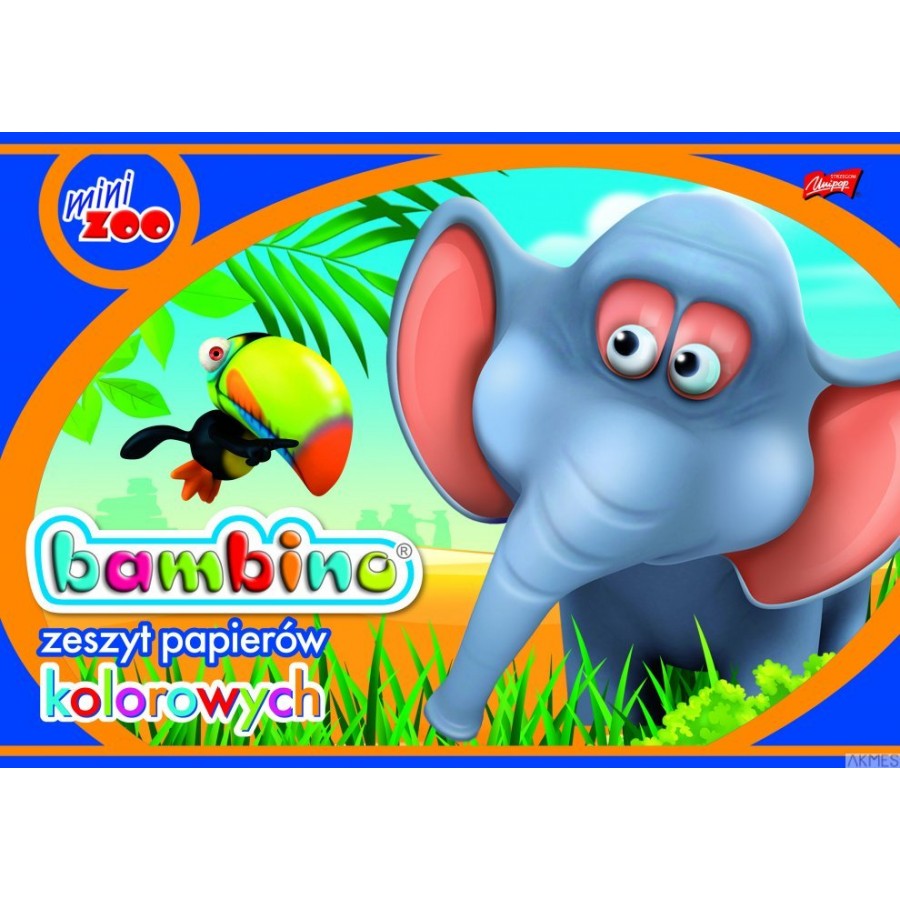 Zeszyt zawiera 8 kolorowych samoprzylepnych kartek o gramaturze 80 g/m2 z podkładem o gramaturze 80 g/m2. Zestaw kolorów to złoty, żółty, różowy, czerwony, zielony, błękitny, brązowy i czarny. Okładka kredowa o gramaturze 115g/m2 wykorzystuje najnowsze motywy wzornicze BAMBINO. Dla podkreślenia, jakości wykończenia okładka jest dodatkowo nabłyszczana