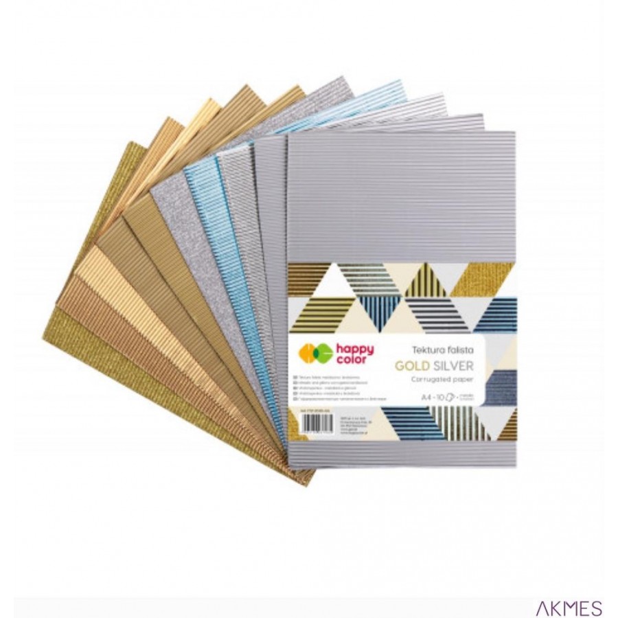 Tektura falista MIX GOLD/SILVER, A4, 10 ark, metallic, brokat, HAPPY COLOR HA 7721 2030-GS