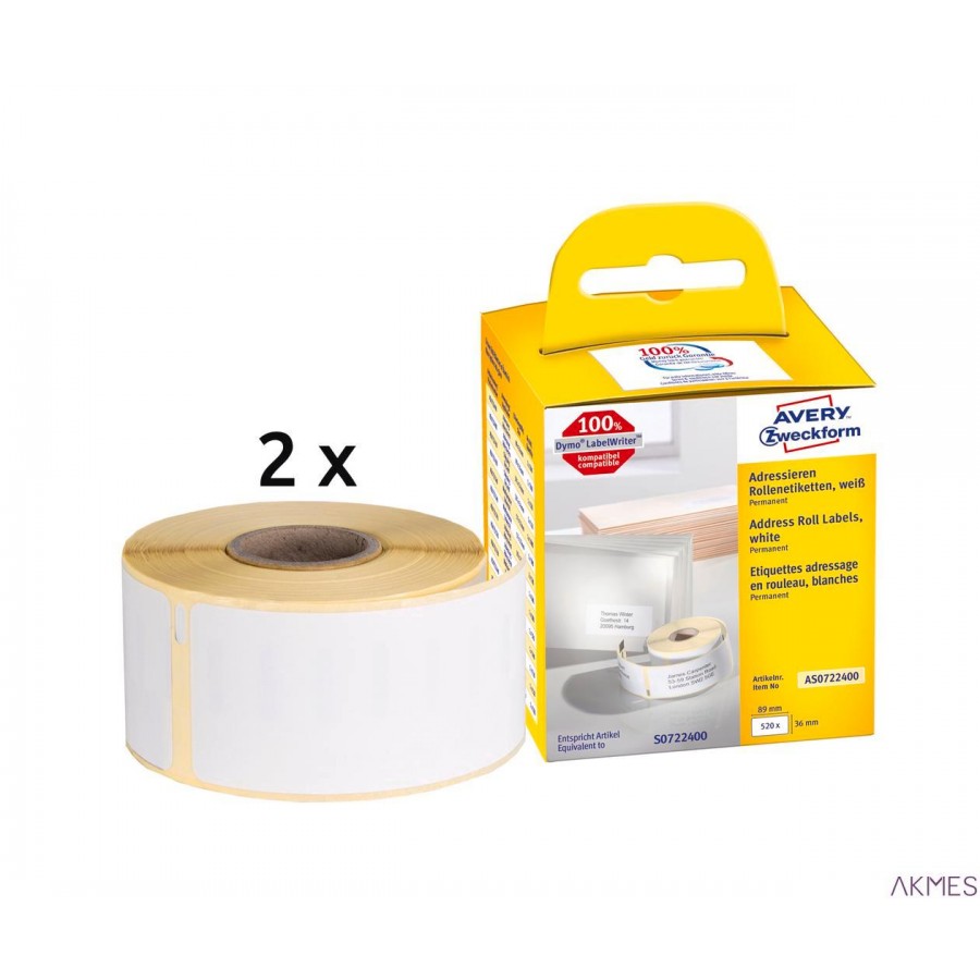 Etykiety adresowe AS0722400 36x89 520 et.x 2, w rolce do termodruku, białe, Avery Zweckform