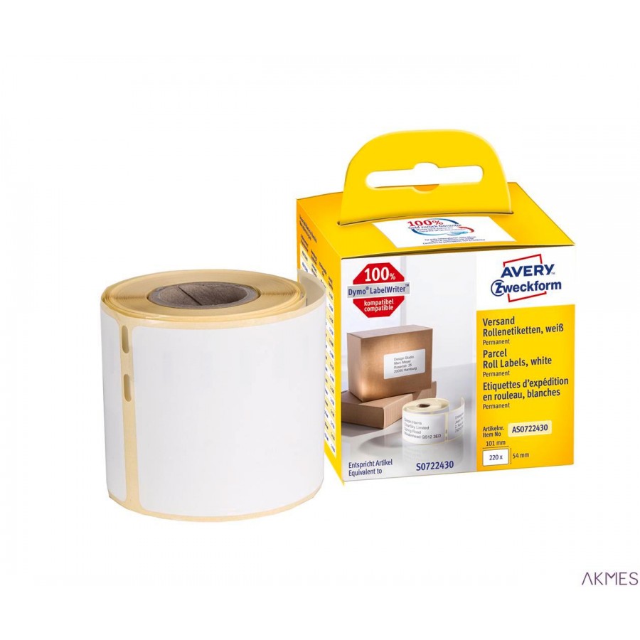 Etykiety wysyłkowe AS0722430 54x101 220 et. w rolce do termodruku, trwałe, białe Avery Zweckform