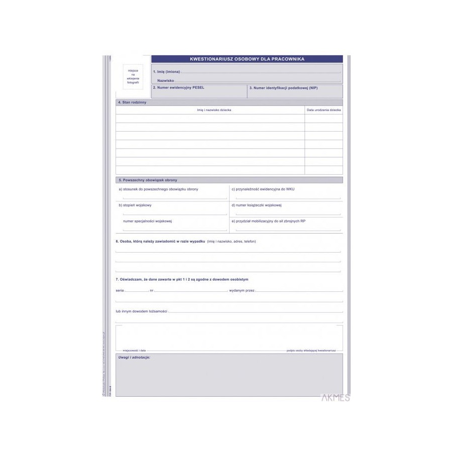 Nowy indeks drk2415158 504-B Kwest.osob.dla pracow.A4 Nowe MICHALCZYK I P