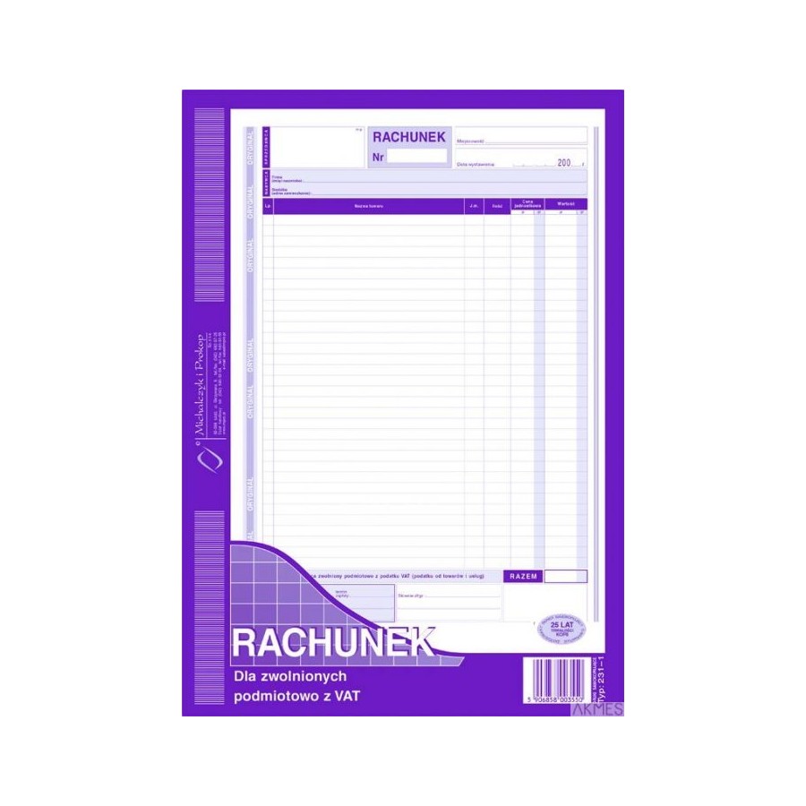 231-1 Rachunek A4 dla zw.z VAT MICHALCZYK I PROKOP