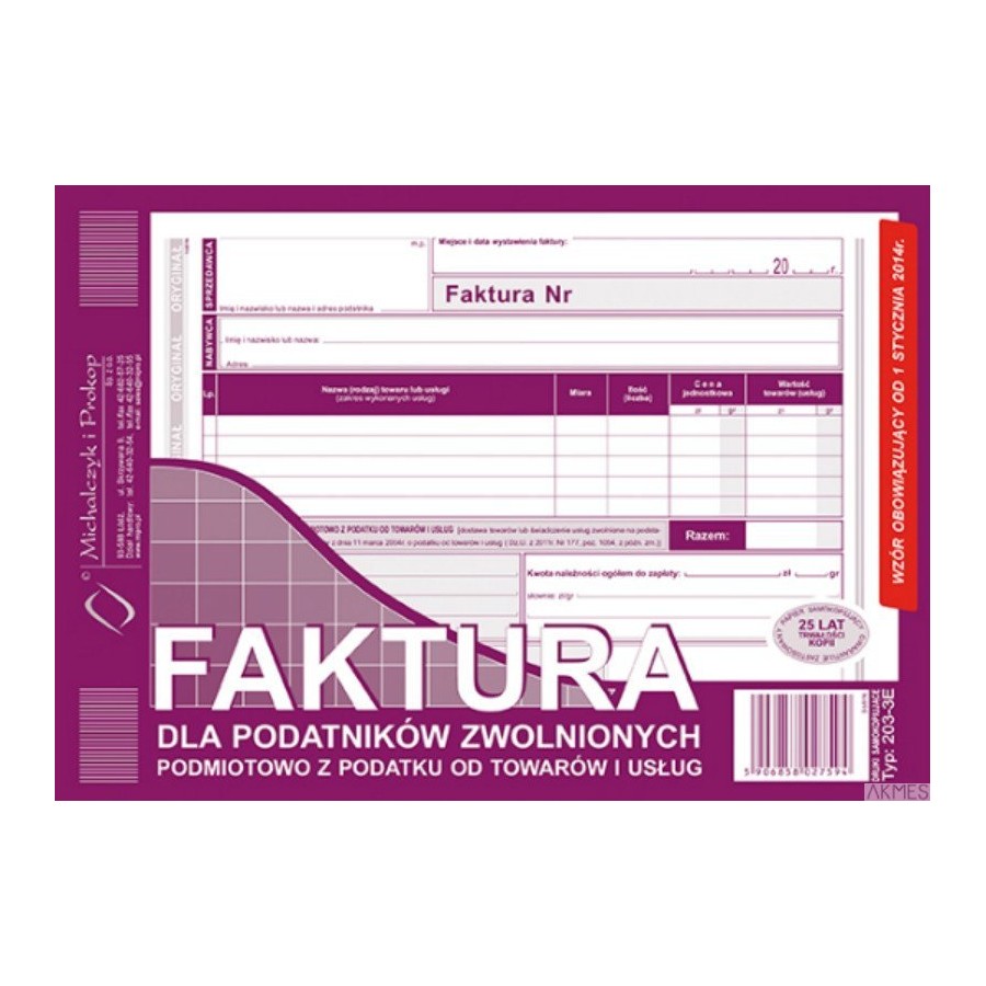 203-3E Faktura dla podatników zwolnionych z VAT A5 (o+1k) MICHALCZYK
