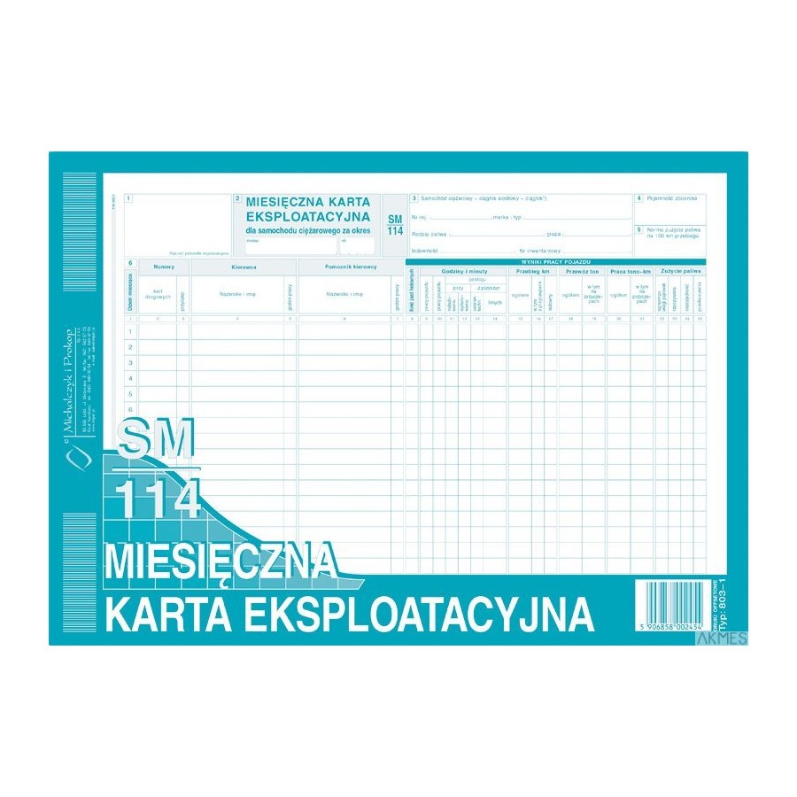Miesięczna karta eksploatacyjna sm/114 (samochód ciężarowy).