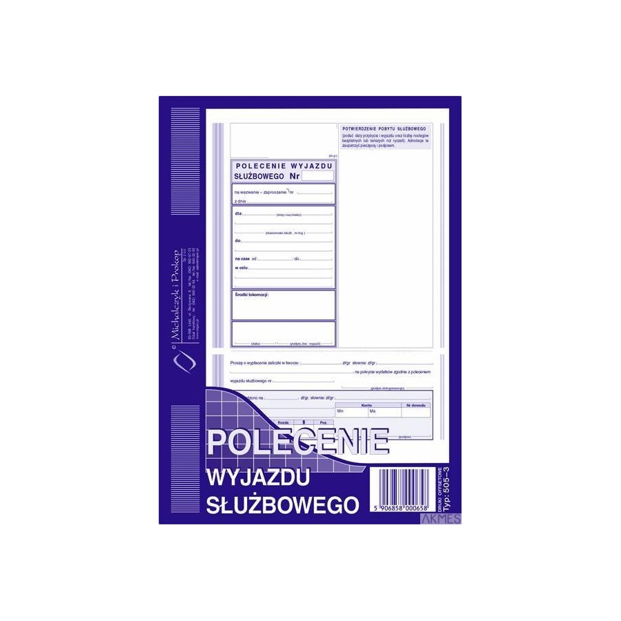 505-3 Polecenie wyjazdu służbowego MICHALCZYK&PROKOP A5 40 kartek