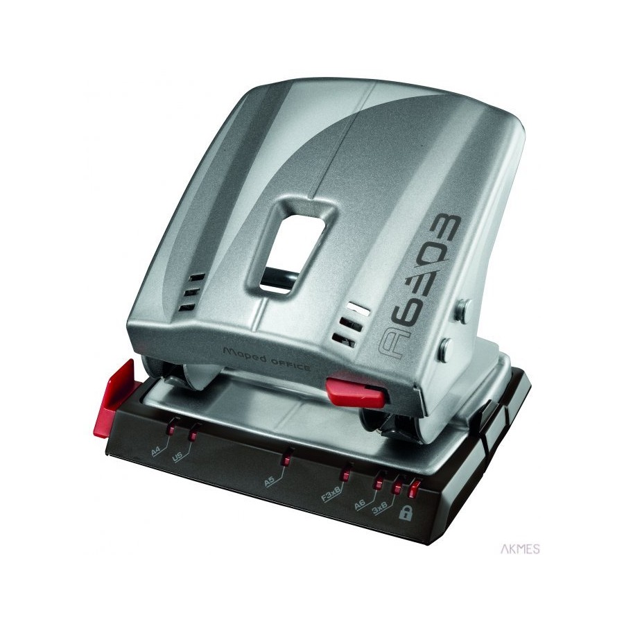 Nowoczesna profesjonalna seria biurowa wyprodukowana z najlepszej jakości materiałów przy zastosowaniu najwyższej technologii _ metalowy mechanizm i obudowa_ precyzyjne stalowe ostrza pozwalają dziurkować minimalizując niezbędny wysiłek_ precyzyjny ogranicznik formatu z podglądem wyraźnie oznaczonego formatu: A4, US, A5, F3x8, A6, 3x8_ wgłębienia w tylnej części podstawy zgodne z rozstawem ringów w segregatorze umożliwiają szybkie dziurkowanie bez użycia listwy formatowej_ wskaźnik środka strony_ łatwy do otwierania pojemnik na ścinki_ odległość między dziurkami 8 mm_ średnica dziurek 5,5 mm_ opakowanie dostosowane graficznie do prezentacji w poziomie na półce i w pionie na hakach.