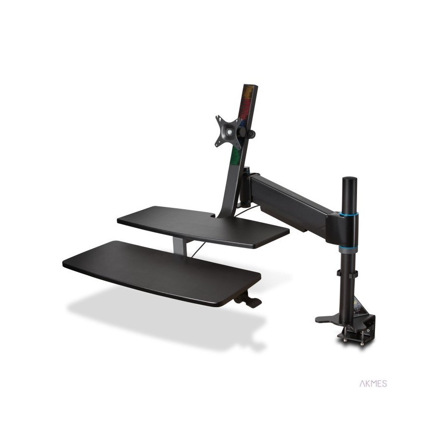 Zmień swoje tradycyjne biurko w uniwersalne stanowisko do pracy na siedząco lub na stojąco. To idealne rozwiązanie dla osób cierpiących na ból pleców lub kregosłupa spowodowanych długotrwałym przebywaniem w pozycji siedzącej. Mechanizm SmartFit umożliwia dopasowanie ruchomego ramienia do najbardziej komfortowego ustawienia w zależności od wzrostu użytkownika. Pneumatyczny system ułatwia przejście z pozycji siedzącej do stojącej. Ruchome ramie ma cztery punkty obrotu ułatwiające ruch stanowiska w górę, w dół oraz na boki. Wzmocniony zacisk można szybko przymocować do biurka o grubości od 1,9 cm do 6,35 cm.
