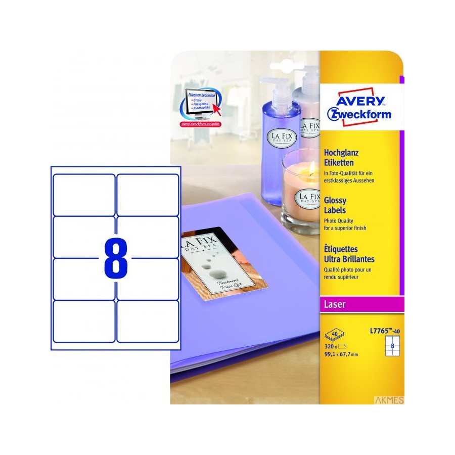Etykiety błyszczące L7765-40 99,1 x 67,7 40ark Avery Zweckform