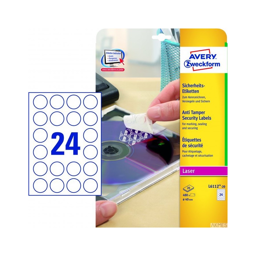 Et. zabezpieczające plomby L6112-20 Q40 20ark Avery Zweckform, białe, poliestrowe