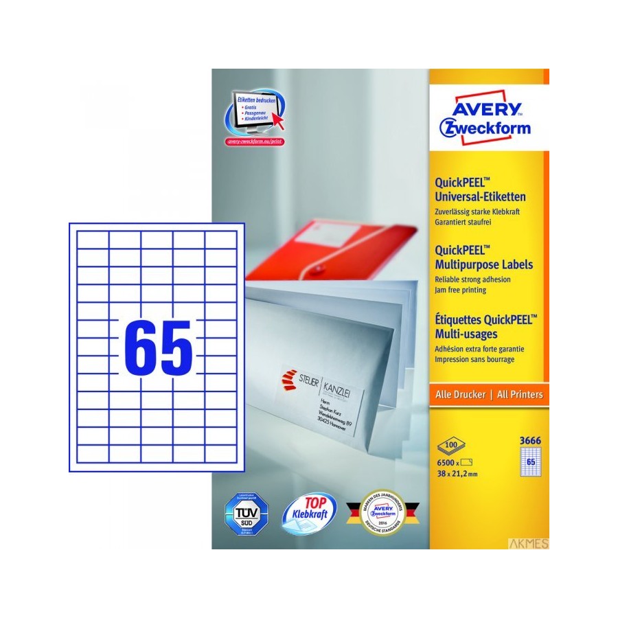 Trwałe etykiety uniwersalne 3666 38x21,2 100ark Avery Zweckform