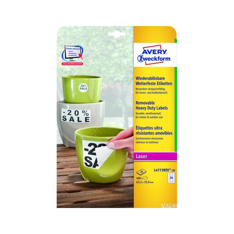 Etykiety Heavy Duty L4773REV-20 63,5x33,9 20ark Avery Zweckform, poliestrowe, usuwalne