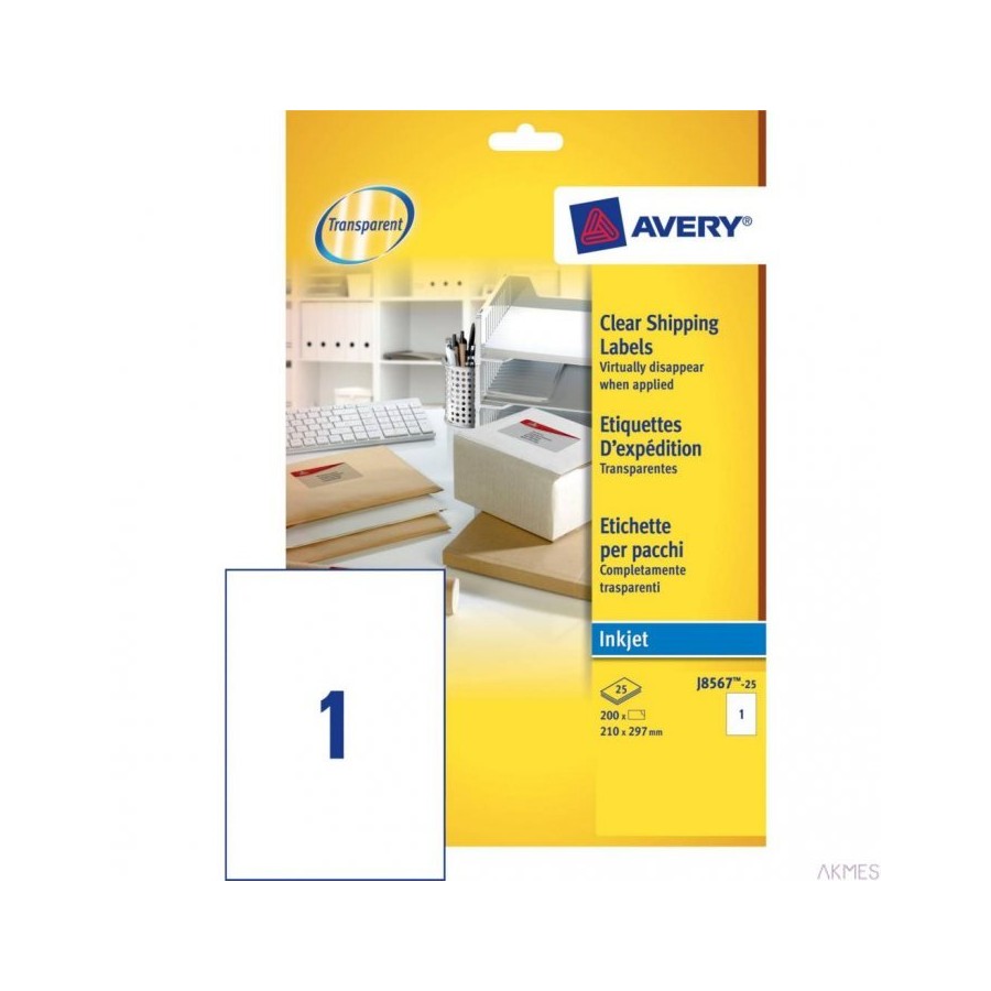 Etykiety wysyłkowe J8567-25 210 x 297 25 ark przezroczyste, Avery Zweckform