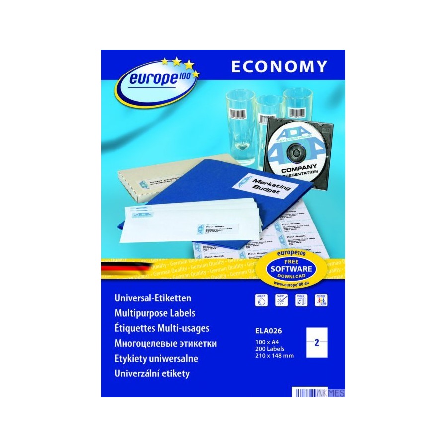 Etykiety uniwersalne ELA026 210 x 148 100 ark Economy Europe100 by Avery Zweckform
