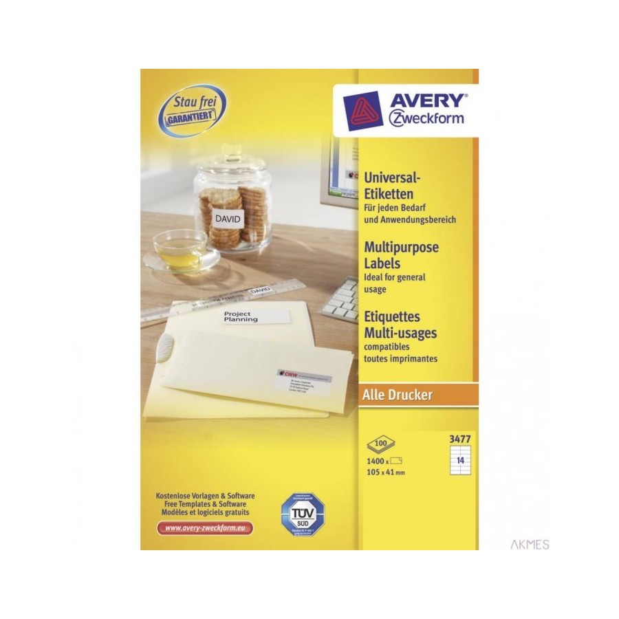 Trwałe etykiety uniwersalne 3477 105 x 41 100ark Avery Zweckform