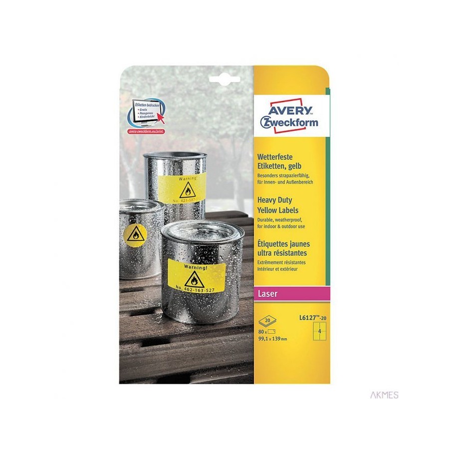 Etykiety Heavy Duty L6127-20 99,1 x 139 20 ark. żółte, poliestrowe, Avery Zweckform