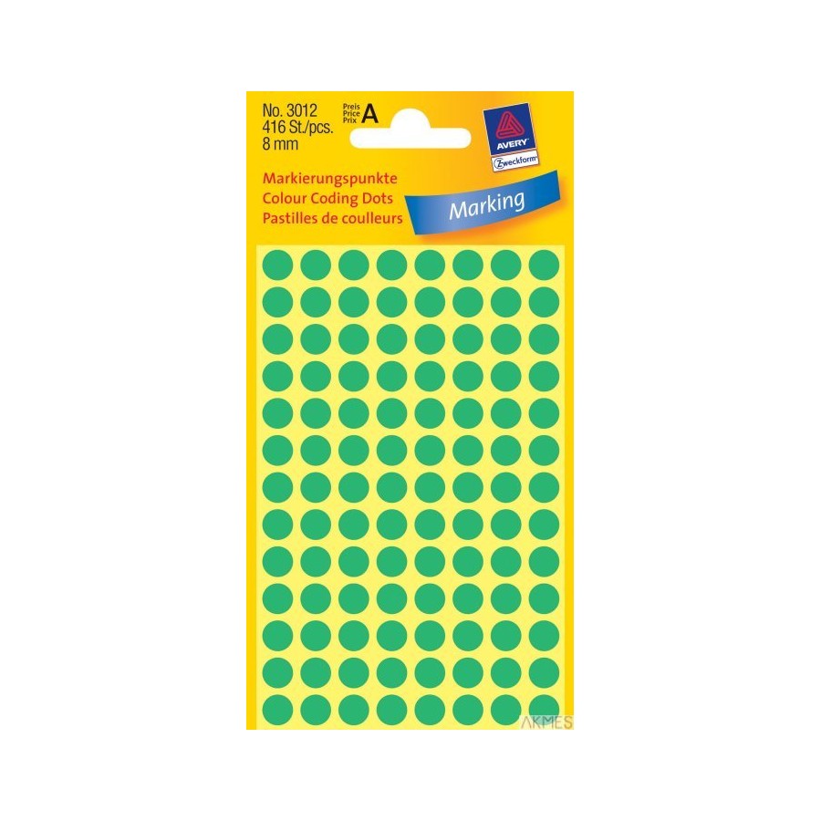 Kółka do zaznaczania zielone 3012 Q8 4ark. trwałe, Avery Zweckform