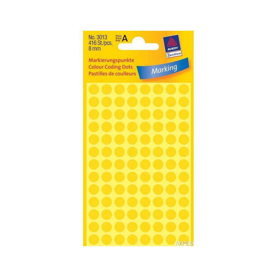 Kółka do zaznaczania kolorowe, 416 etyk./op., Q8 mm, żółte Avery Zweckform, 3013