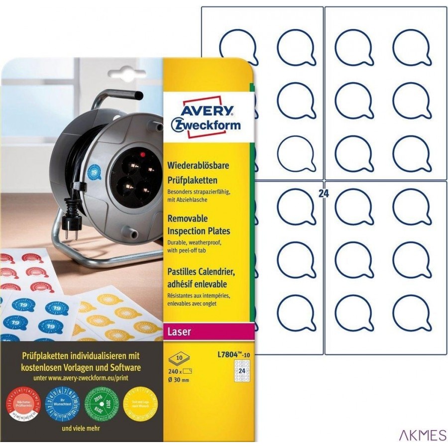 Usuwalne tabliczki inspekcyjne L7804-10 Q30 10ar Avery Zweckform