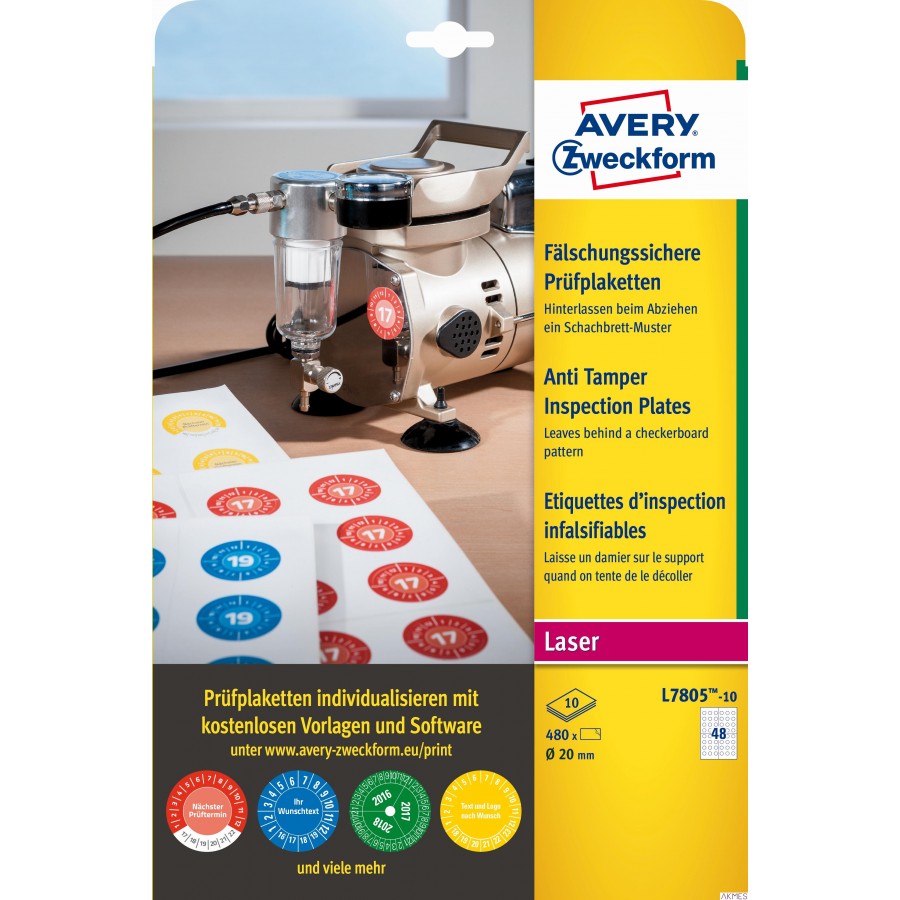 Tabliczki inspekcyjne plomby L7805-10 Q20 10ark Avery Zweckform
