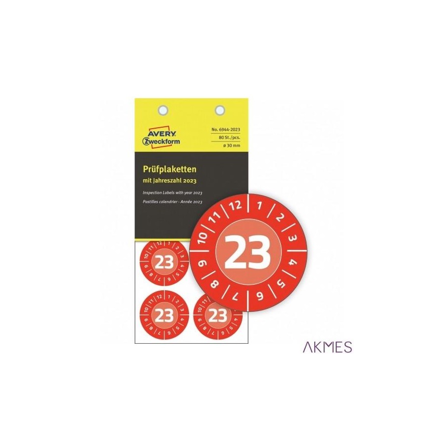 Tabliczki inspekcyjne 2023 winylowe Q30 czerwone, 80 sztuk, do opisu ręcznego, AVERY ZWECKFORM, 6944-2023