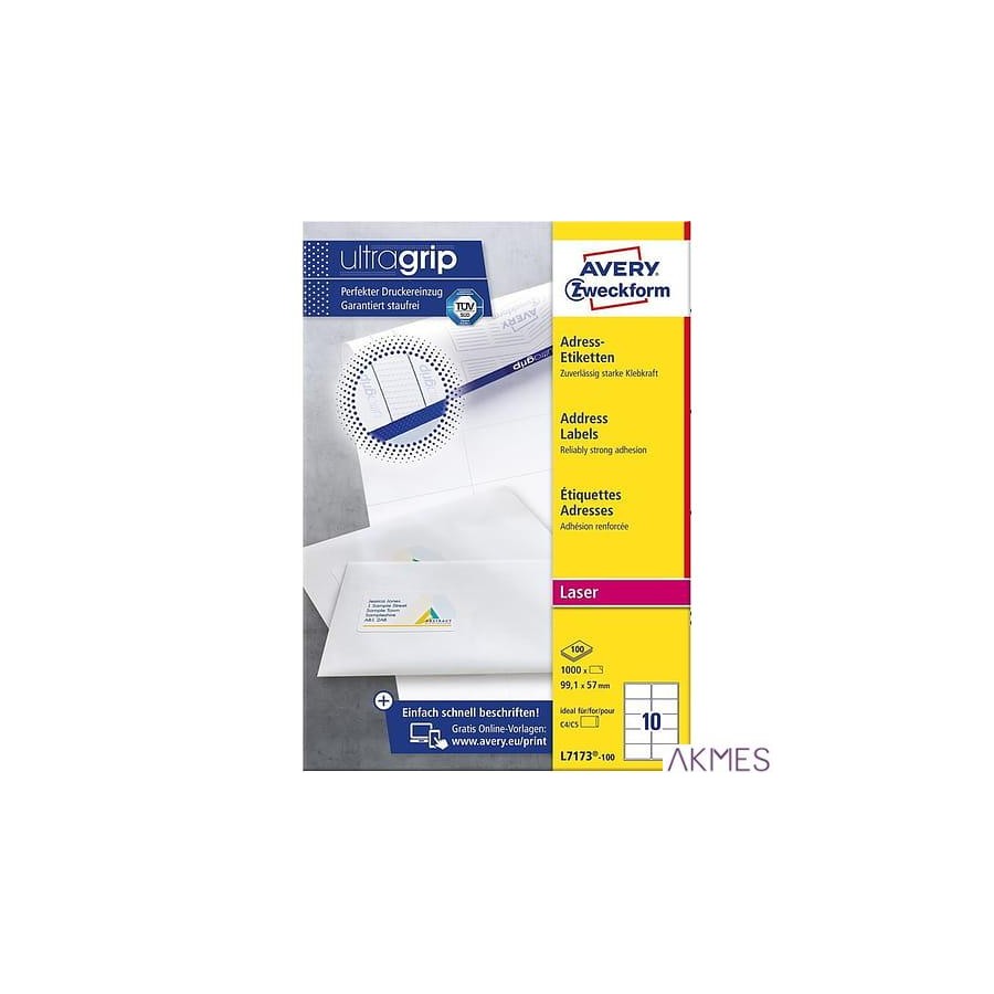 Recyklingowane etykiety adresowe, A4, 100 ark./op., 99,1 x 38,1 mm, białe, AVERY ZWECKFORM, LR7163-100