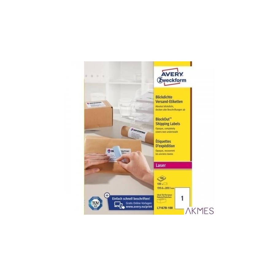Etykiety wysyłkowe białe, A4, 100 ark./op., 199,6 x 289,1 mm, białe, AVERY ZWECKFORM BLOCKOUT, L7167B-100
