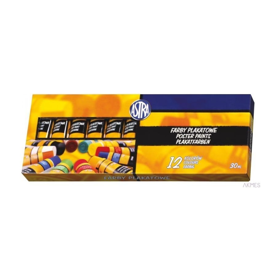 Farby plakatowe Astra 12 kolorów - tuba 30 ml, 83110901