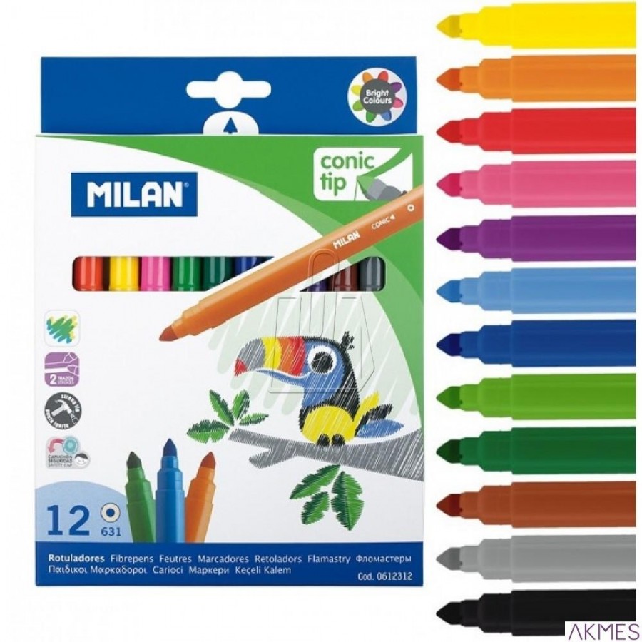Flamastry ze stożkową końcówką, 12 szt. 0612312 MILAN