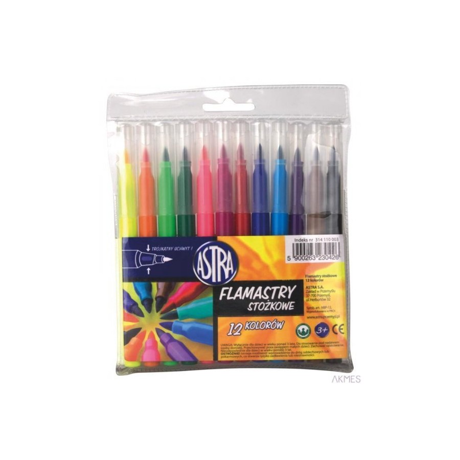 Flamastry Astra stożkowe 12 kolorów, 314110003