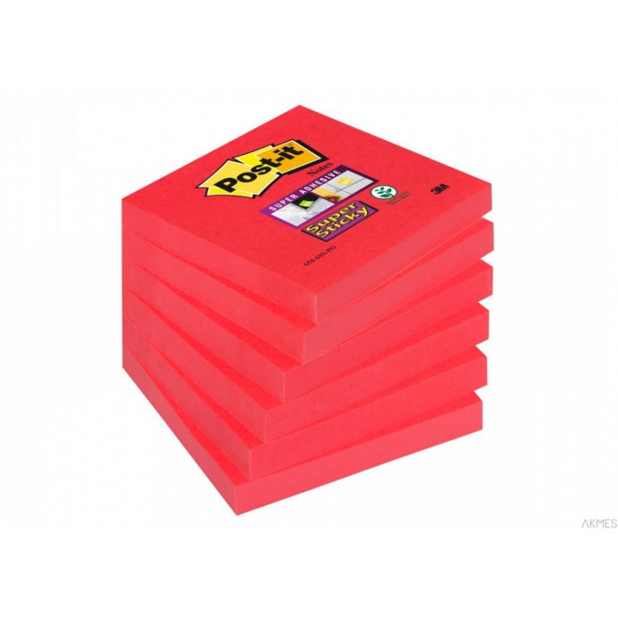 654-6SS-PO Bloczek samoprzylepny Post-it_ Super Sticky,_czerwień, 6 sztuk po 90 kartek, 76x76 mm.