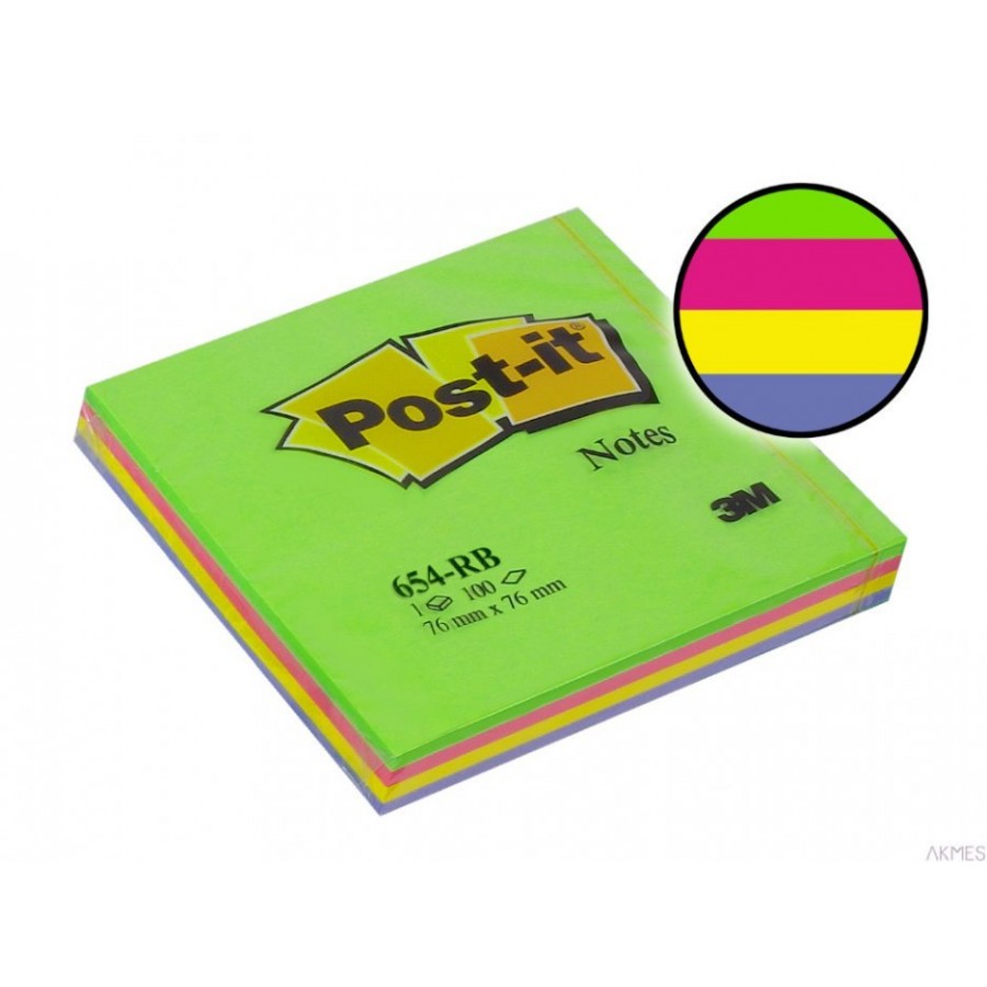 654-RB Bloczek samoprzylepny Post-it_, _- wiosenny, _- sztuka 100 kart, 76x76 mm_- jednostka sprzedazy 1 sztuka.