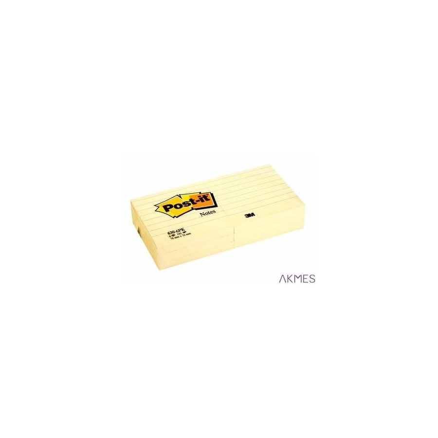 Bloczek samoprzylepny POST-IT_ w linie (630-6PK), 76x76mm, 6x100 kart., żółty