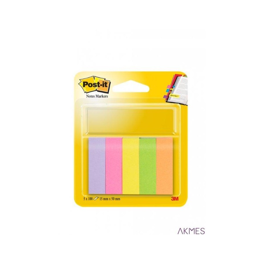 Znaczniki POST-IT (670/5), papier, 15x50mm, 5x100 kart., mix kolorów neonowy