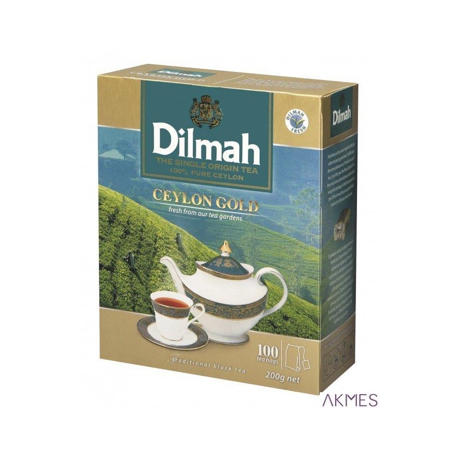Herbata Dilmah Ceylon Gold_- 100% czysta cejlońska czarna herbata_- aromatyczna, o średniej mocy i głębokiej barwie_- herbata uniwersalna - parzona krótko (do 3 minut) daje lekko pobudzający, śniadaniowy napar, zaparzona nieco dłużej (ok. 5 minut) uspokaja podczas wieczornego_relaksu_- jednostka sprzedaży 1 opakowanie