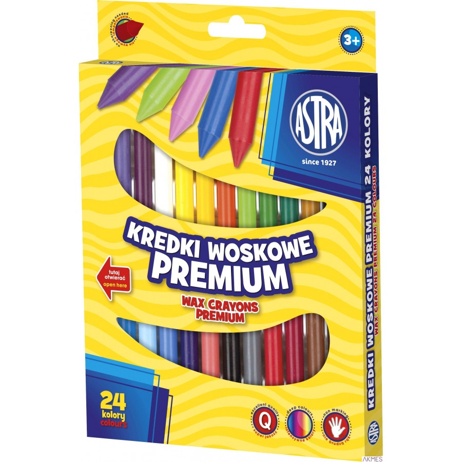 Kredki woskowe ASTRA VISION są wytwarzane na bazie wysokiej jakości surowców. Mają żywe, intensywne kolory oraz doskonałe właściwości kryjące. Są odporne na złamania, nie kruszą się, nie pylą i nie brudzą rąk. Nie wymagają temperowania. Kredki pozwalają kreślić łagodne, jednolite linie na wszystkich rodzajach papieru oraz na powierzchniach drewnianych i porowatych np. asfalt lub papier ścierny. Używane są w technice batikowej._