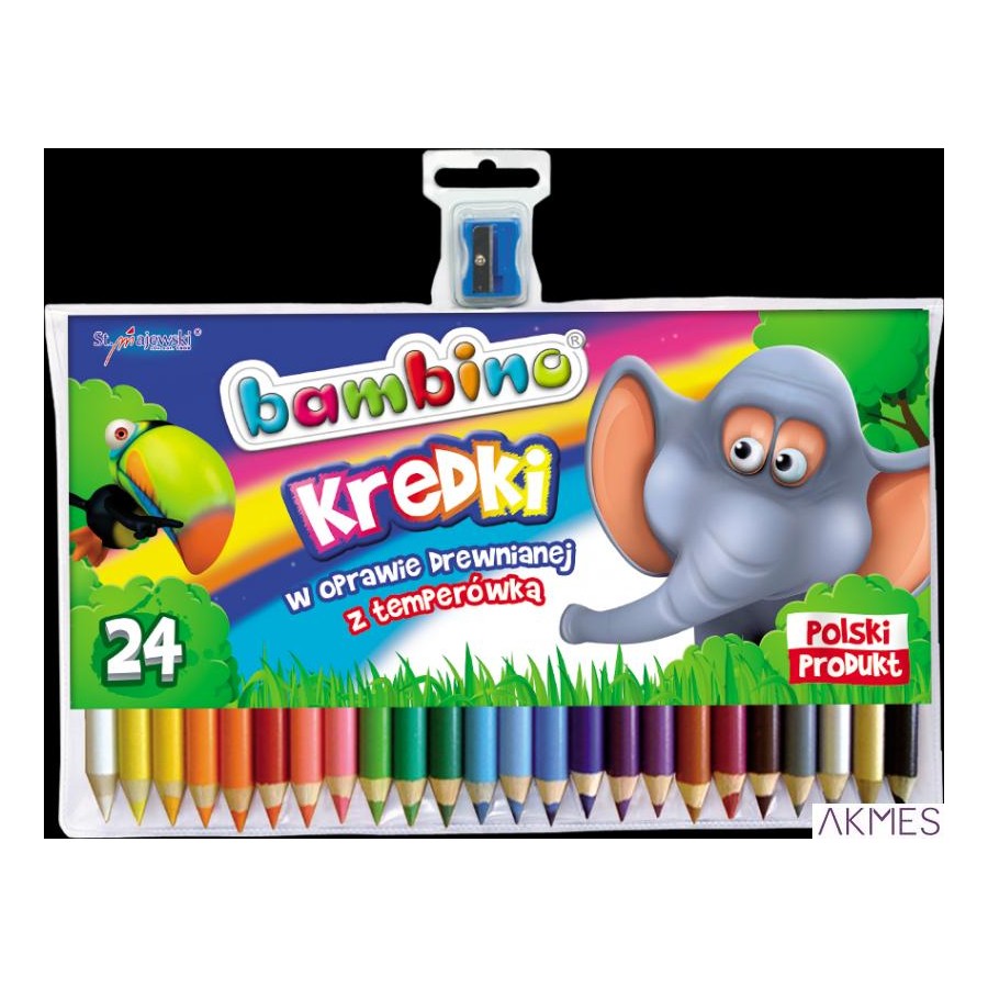 Kredki trójkątne BAMBINO w drewnie 24 kolorów dł. 15cm+temperówka St.Majewski