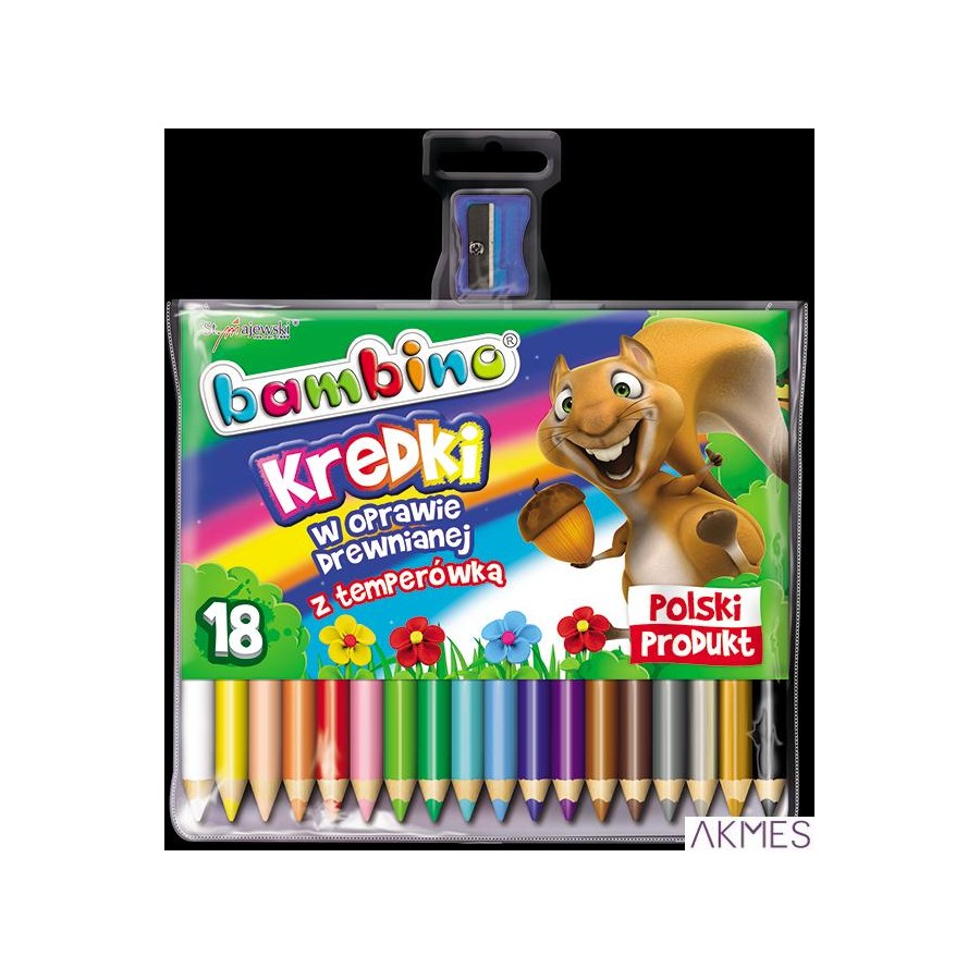 Kredki trójkątne BAMBINO 18 kolorów+temperówka w oprawie drewnianej