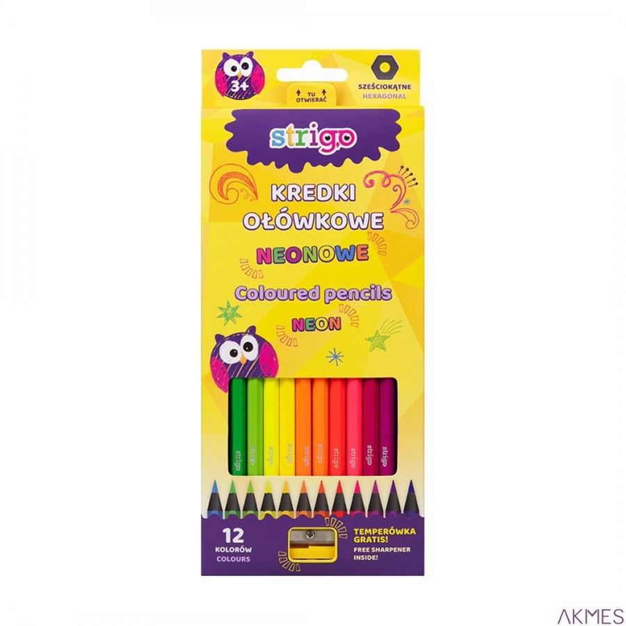 Kredki ołówkowe HEXAGONALNE czarne drewno neon 12szt.+temp. SSC117