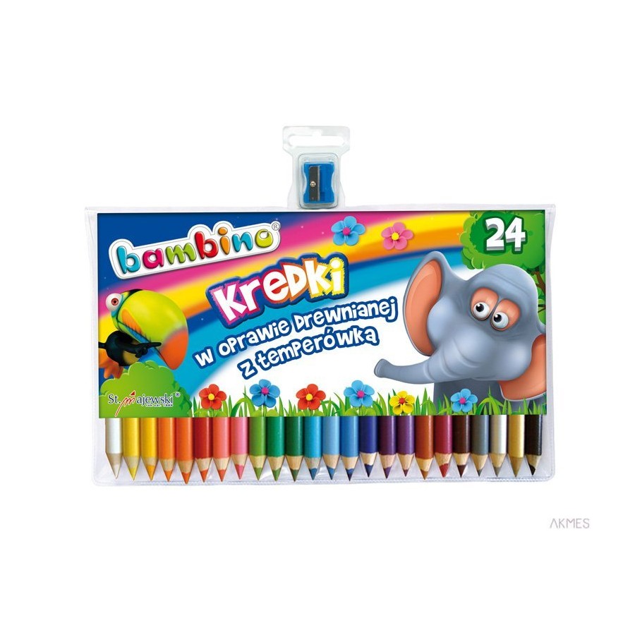 Kredki BAMBINO w drewnie 24 kolorów dł. 15cm+temperówka St.Majewski