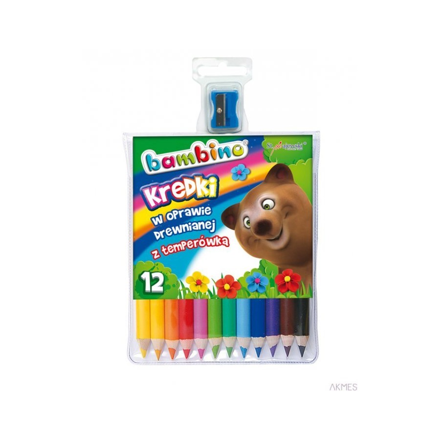 Kredki BAMBINO w drewnie 12 kolorów dł. 15cm+temperówka St.Majewski