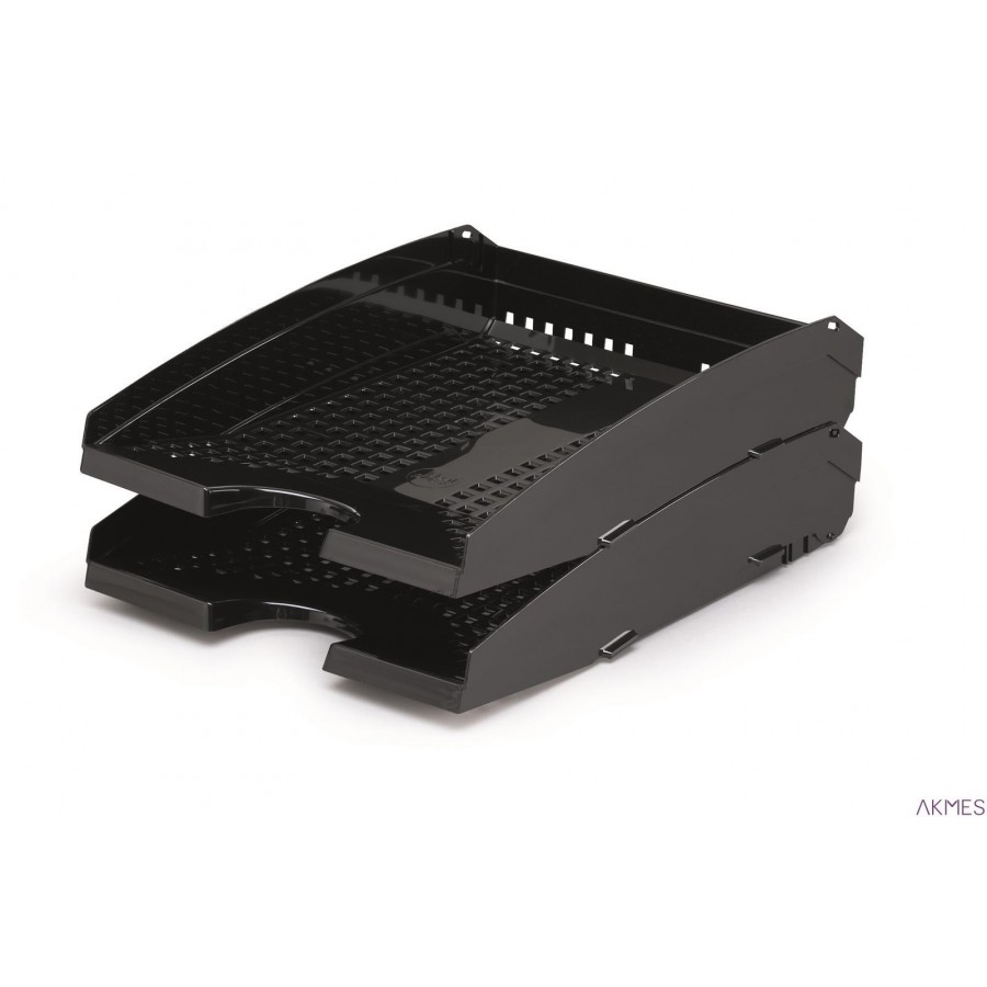 Półka na dokumenty formatu A4 do C4. Ułatwiony dostęp do dokumentów poprzez możliwość uniesienia dowolnego pojemnika w zestawie. Wymiary: 250x70x337 mm (SxWxG).
