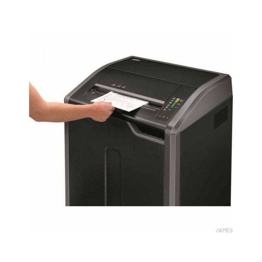 Niszczarka do dużego biura dla 10+ osób z systemem 100% Jam Proof ____Niszczy jednorazowo 32 kartki (70g) na ścinki 4x30 mm, P-4/T-4/O-3__Niszczy dokumenty ze zszywkami i małymi spinaczami, karty kredytowe i płyty CD/DVD__Szerokość szczeliny wejściowej 405 mm__Elektroniczny start-stop, funkcja cofania__Wyjmowany kosz o pojemności 132 litry__Obudowa na kółkach__Gwarancja: 2 lata na całość urządzenia, 20 lat na noże tnące!___CECHY UNIKALNE:____Wolna od zacięć dzięki inteligentnemu systemowi 100% Jam Proof.__Bezpieczna. Zatrzymuje pracę w momencie dotknięcia szczeliny wejściowej przez ludzi lub zwierzęta dzięki zastosowaniu czujnika SafeSense_.__Energooszczędna. Pobiera aż do 70% mniej energii podczas pracy i uśpienia, dzięki zastosowaniu rewolucyjnego Energy Savings System.__Wygodna w użytkowaniu. Czytelny panel sterowania. Diody informują o przepełnieniu i wyjętym koszu. Automatyczne zatrzymanie przy pełnym koszu.__Mocna. Wyposażone w nowoczesny i wytrzymały silnik indukcyjny przystosowany do pracy ciągłej.__Bezobsługowa. Automatycznie oliwi i czyści noże tnące za pomoc mechanizmu Auto Oil przedłużając żywotność urządzenia.__Ergonomiczna. Specjalne półki na drzwiach do przechowywania oleju i worków.__Wyjmowany kosz o dużej pojemności gwarantuje czystość i łatwość opróżniania.__Silnik stworzony do pracy ciągłej___________