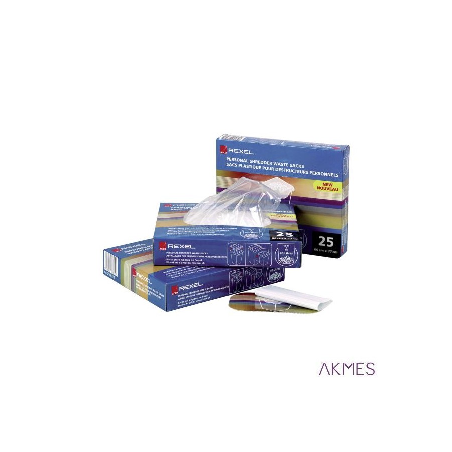 Plastikowe worki Rexel AS100 na ścinki do małych niszczarek, pojemność 40 litrów.
