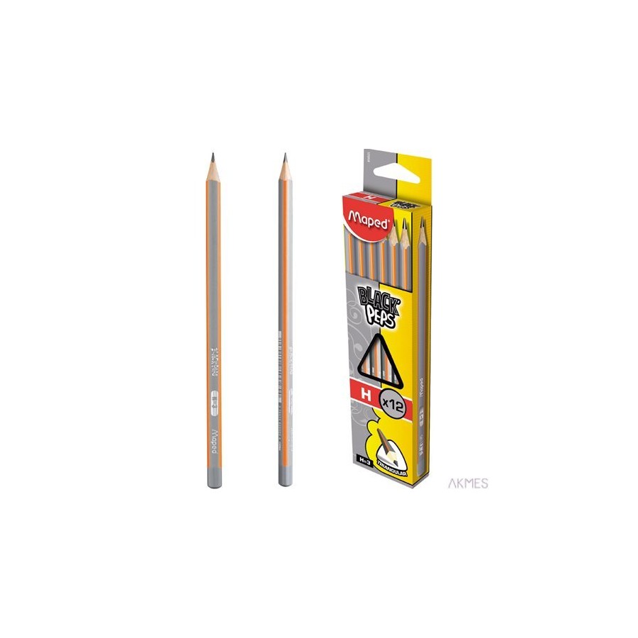 Ołówek BLACKPEPS H wykonany z drewna lipowego, ergonomiczny, trójkatny kształt, odporny na złamania grafit, czytelne oznaczenie twardości. JS: pudełko 12 szt.