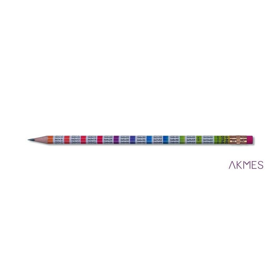 Ołówek grafitowy zakończony gumką. Okrągły w przekroju, twardość HB. Lakierowany, z nadrukiem w formie tabliczki mnożenia. _Długość: 189mm