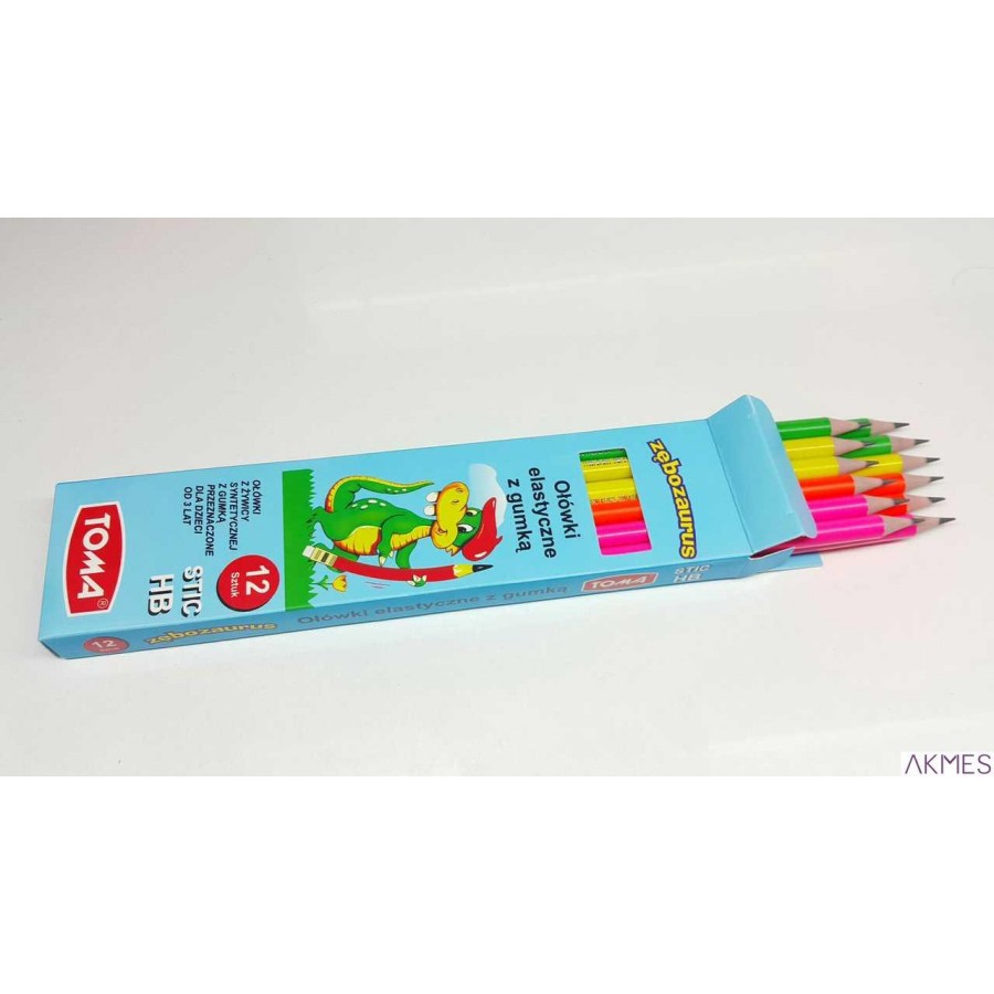 Ołówki z żywicy syntetycznej ZĘBOZAURUS,HB, kolorowe z gumką, mix TO-002 Toma