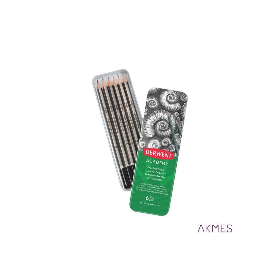 Ołówki do rysowania Derwent Academy, w pudełku metalowym, 6 szt (3B-2H), 2301945